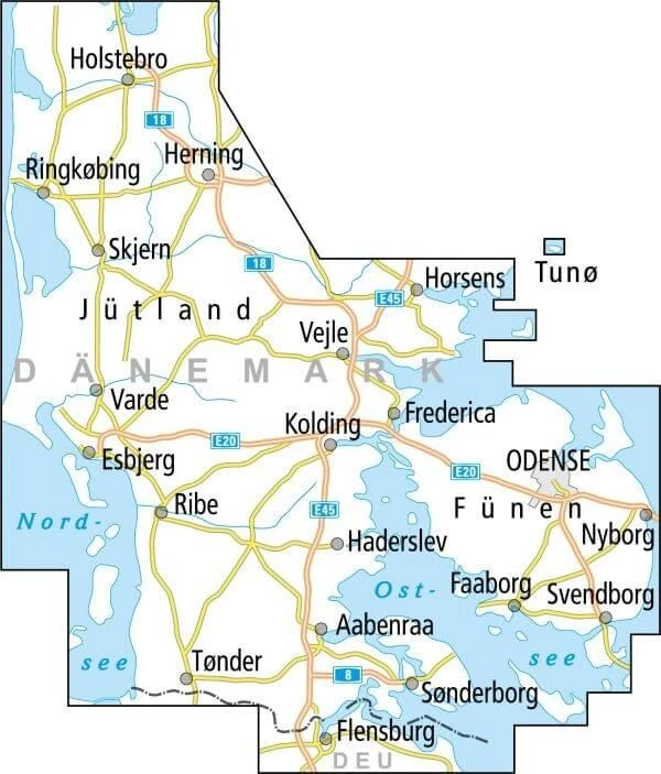 Enthaltene Orte: Holstebro, Herning, Ringkobing, Skjern, Horsens, Vejle, Varde, Kolding, Frederica, Esbjerg, Odense, Ribe, Haderslev, Nyborg, Faaborg, Svendborg, Aabenraa, Tonder, Sonderborg