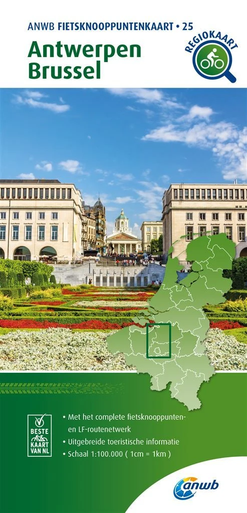 Radkarte mit Knotenpunkten Antwerpen – Brüssel im Maßstab 1:100.000 von ANWB Bl. 25