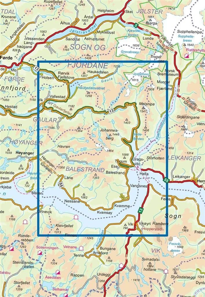 Enthaltene Orte, Berge und Seen: Balestrand, Ese, Havren, Vallestad, Holsen, Rorvik Fjellstove, Mundal, Johannesberg, Tjugum, Kvamme, Nessane, Dragsviki Region: Norwegen (SĂĽdnorwegen), Balestrand, Fjordane, Gaular, Hoyanger, Vik