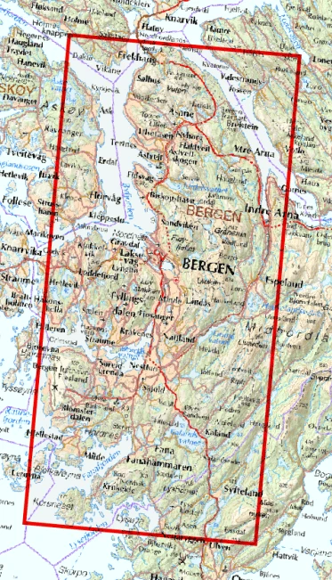 Größere enthaltene Orte, Berge, Punkte: Salhus, Frekhaug, Asane, Ytre-Arna, Bergen, Nesttun, Fana, Hjellestad, Syfteland