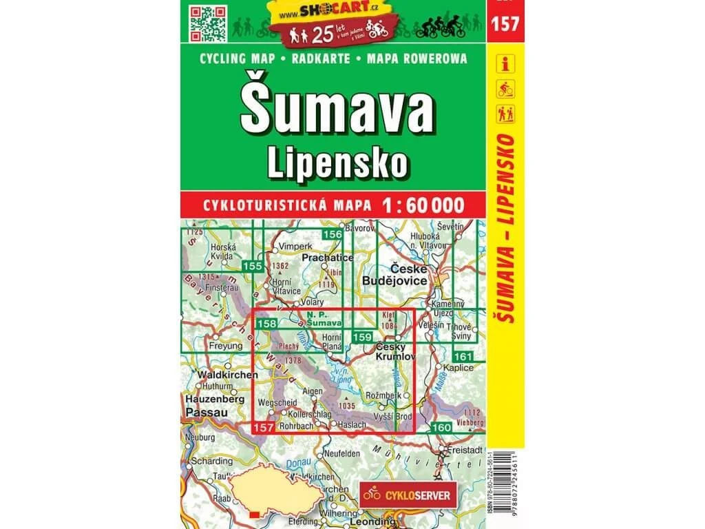 SHOCart 157 Radwanderkarte für Böhmerwald, Stausee Lipno im Maßstab 1:60.000 in Tschechien