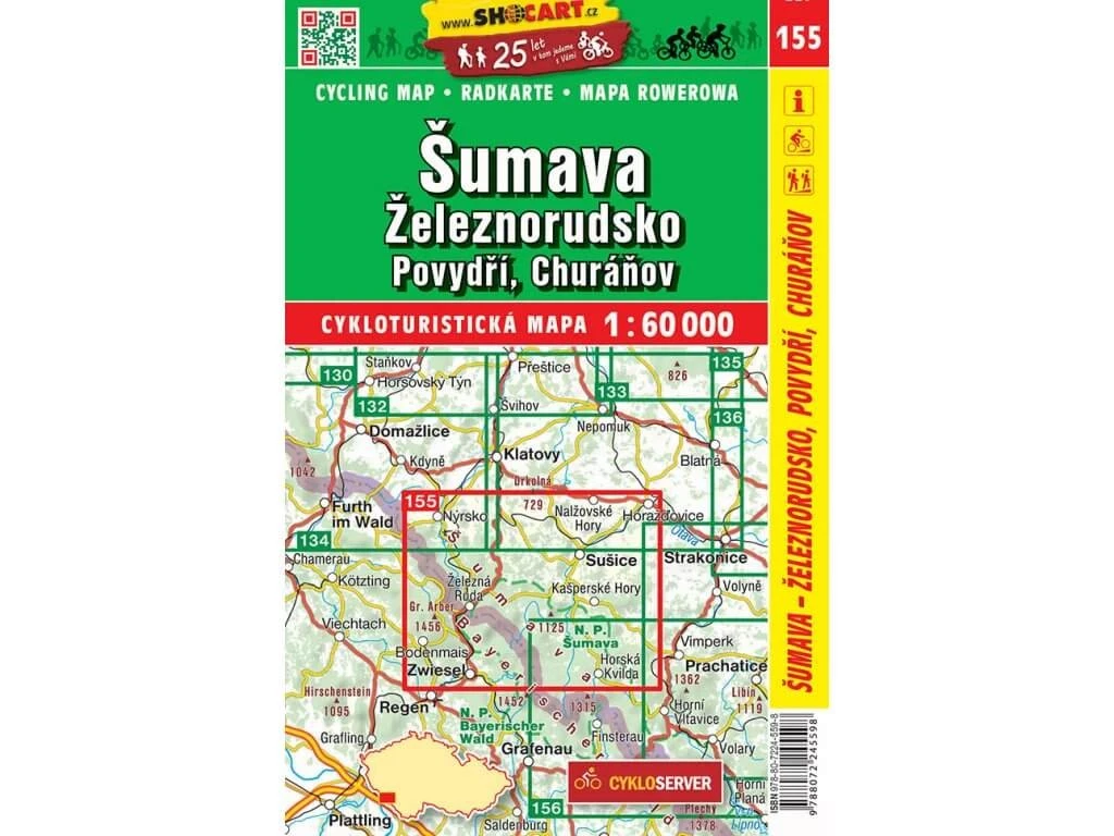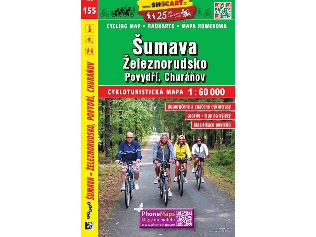 SHOCart 155 Radwanderkarte für Böhmerwald, Zeleznorudsko, Povydri, Churanov im Maßstab 1:60.000 in Tschechien