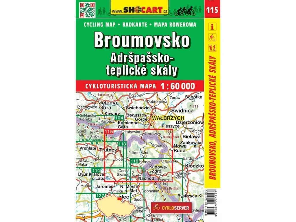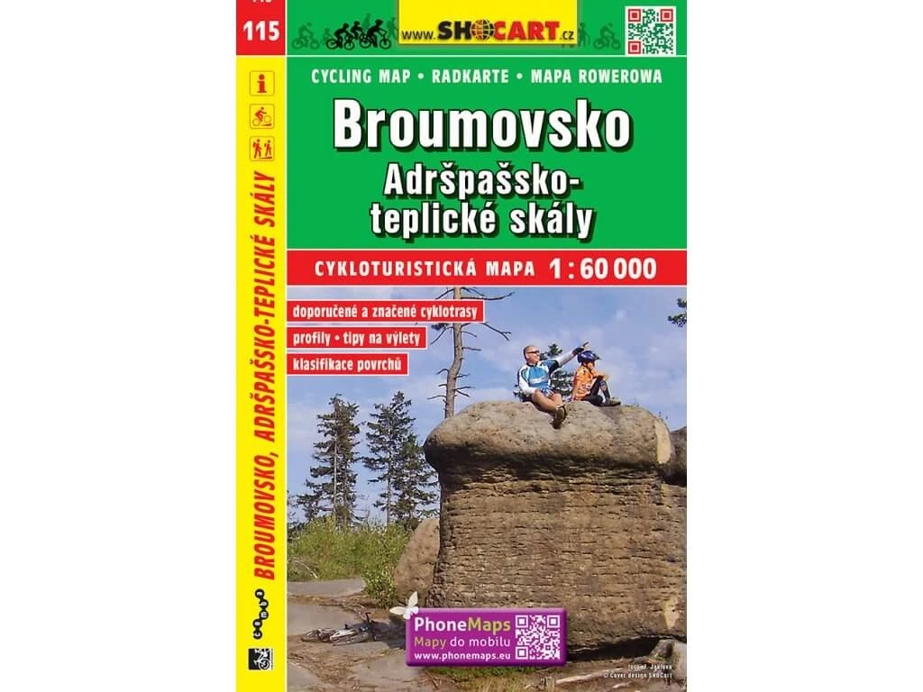 SHOCart 115 Radwanderkarte für Braunau, Adersbach-Weckelsdorfer Felsenstadt im Maßstab 1:60.000 in Tschechien