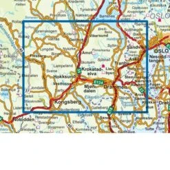 Norwegische topografische Wanderkarte für Drammensmarka mit Finnemarka, Vestmarka, Hokksund, Kongsberg og Holtefjell