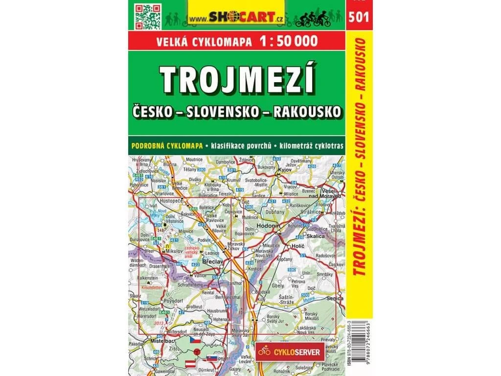 SHOCart 501 Radwanderkarte für das Dreiländereck: Länder:Tschechien|Länder:Slowakei|Länder:Österreich im Maßstab 1:50.000
