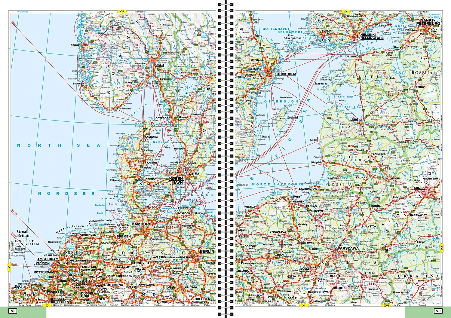 Ideal für die großen Urlaubsfahrten – Der “Falk Reiseatlas Europa” zeigt alle wichtigen Reiserouten vom Nordkap bis Sizilien und von Lissabon bis Ankara. Die Kartenteile der Maßstabsbereiche 1:800.000 und 1:4,5 Mio. sind durch ein Farbleitsystem übersichtlich gekennzeichnet. Jeder Kartenteil enthält eine Übersichtskarte, die den Blattschnitt der einzelnen Ländergruppen farblich hervorhebt. Schnell und zielsicher finden Sie so den gewünschten Kartenausschnitt. Das klare, übersichtliche Kartenbild zeigt alle für den Autofahrer wichtigen Details, also bestens geeignet für die Reiseplanung und für die Fahrt zu den europäischen Urlaubszielen. Die 12-sprachige Zeichenerklärung, eine Übersicht der Länderflaggen und ein Ortsverzeichnis runden diesen wirklich internationalen Reiseatlas ab.