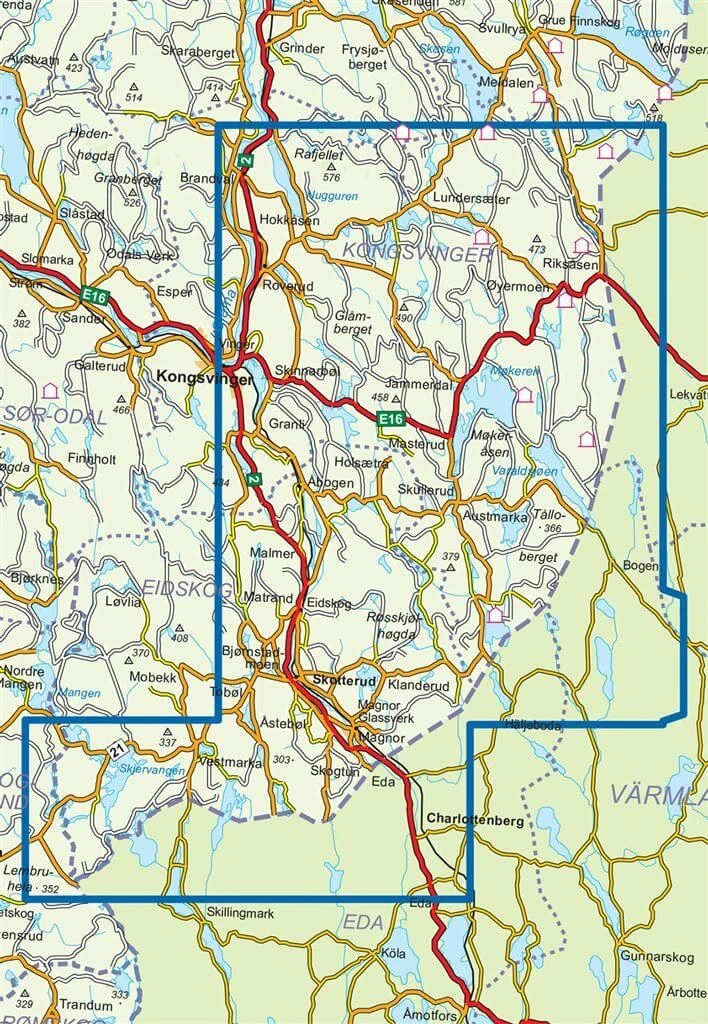 Enthaltene Orte, Berge und Seen: Kongsvinger, Rafjellet, Lundsaeter, Riksasen, Hokkasen, Skotterud, Charlottenburg, Vestmarka, Magnor, Matrand, Granli, Jammerdal, Lembruheia, Skullerud.