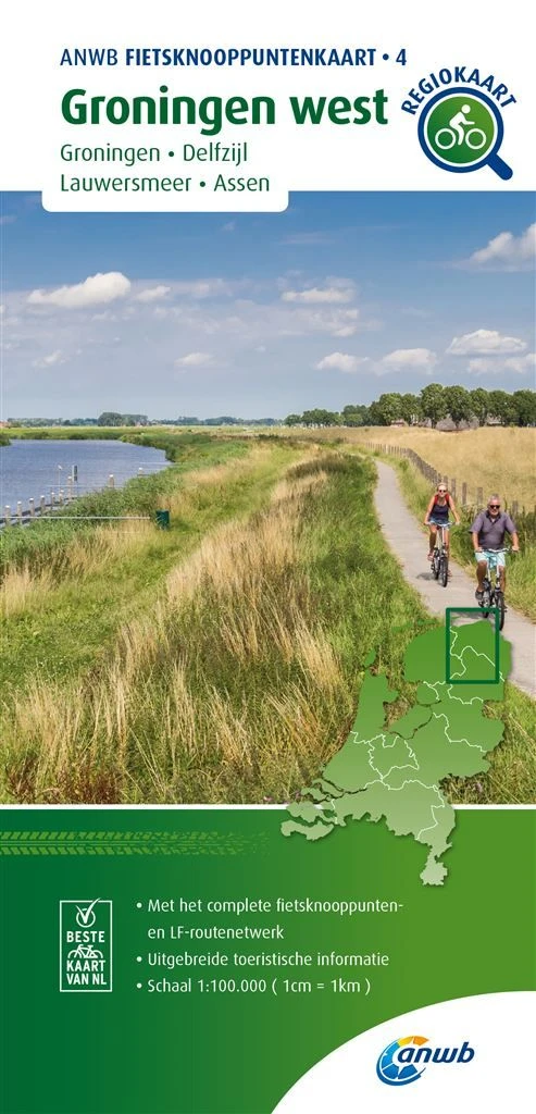 Radkarte mit Knotenpunkten Groningen West im Maßstab 1:100.000 von ANWB Bl. 04