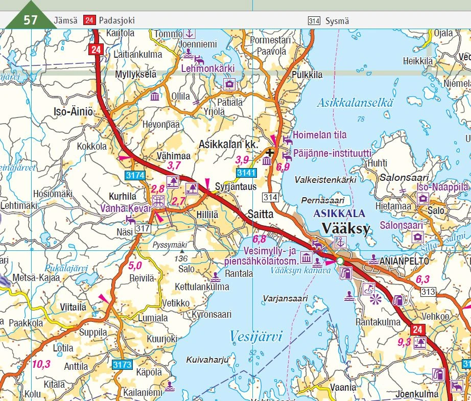Kartaston alussa esitellään sata suosittua kotimaan matkailukohdetta osoitteineen. Kohteet on merkitty myös karttasivuille. Lisäksi kartastossa on tietoa esimerkiksi kotimaan lautoista ja losseista sekä liikennemerkeistä. Kartaston lopussa on kattava paikannimihakemisto, joka sisältää myös ruotsin- ja saamenkieliset rinnakkaisnimet Suomen alueella.