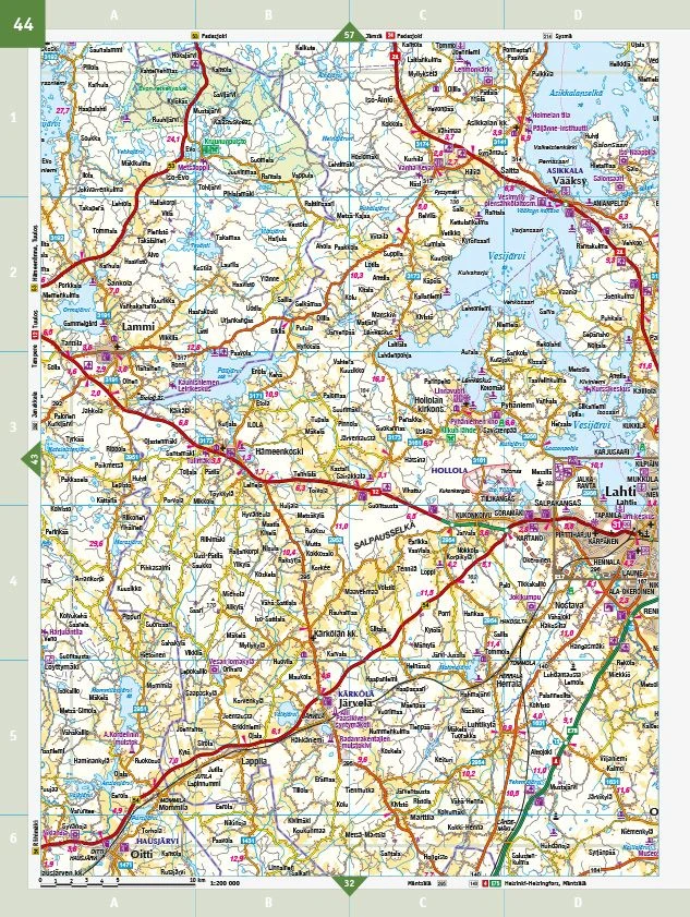 Kartasto kattaa koko Suomen, ja karttoja on useissa eri mittakaavoissa erilaisten tarpeiden mukaan. Eteläinen Suomi aina Oulun korkeudelle saakka esitetään mittakaavassa 1:200 000. Pohjois-Suomen karttasivujen mittakaava on 1:250 000. Pääkaupunkiseutu sekä Turku, Tampere ja Oulu ympäristöineen esitetään myös tarkemmilla 1:100 000 kartoilla. Suurimmista kaupungeista on lisäksi taajamakartat mittakaavassa 1:40 000. Tiekartoilta erottuvat selvästi niin kaikki ajokelpoiset tiet, teiden ja liittymien numerot, välimatkat, paikannimet kuin teiden päällystetiedotkin.