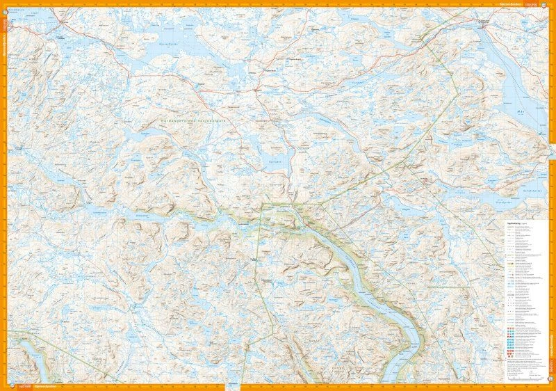 Größere enthaltene Orte, Berge, Punkte: Sandhaug, Besso, Lagaros, Mogen, Hamrefjellet, Litlos, Haukeliseter, Roldal, Roddalsfjellet, Skare, Sandvin, Odda, Bjornesfjorden, Gjuvsjaen, Valldalsvatnet, Hadangervidda-Nationalpark