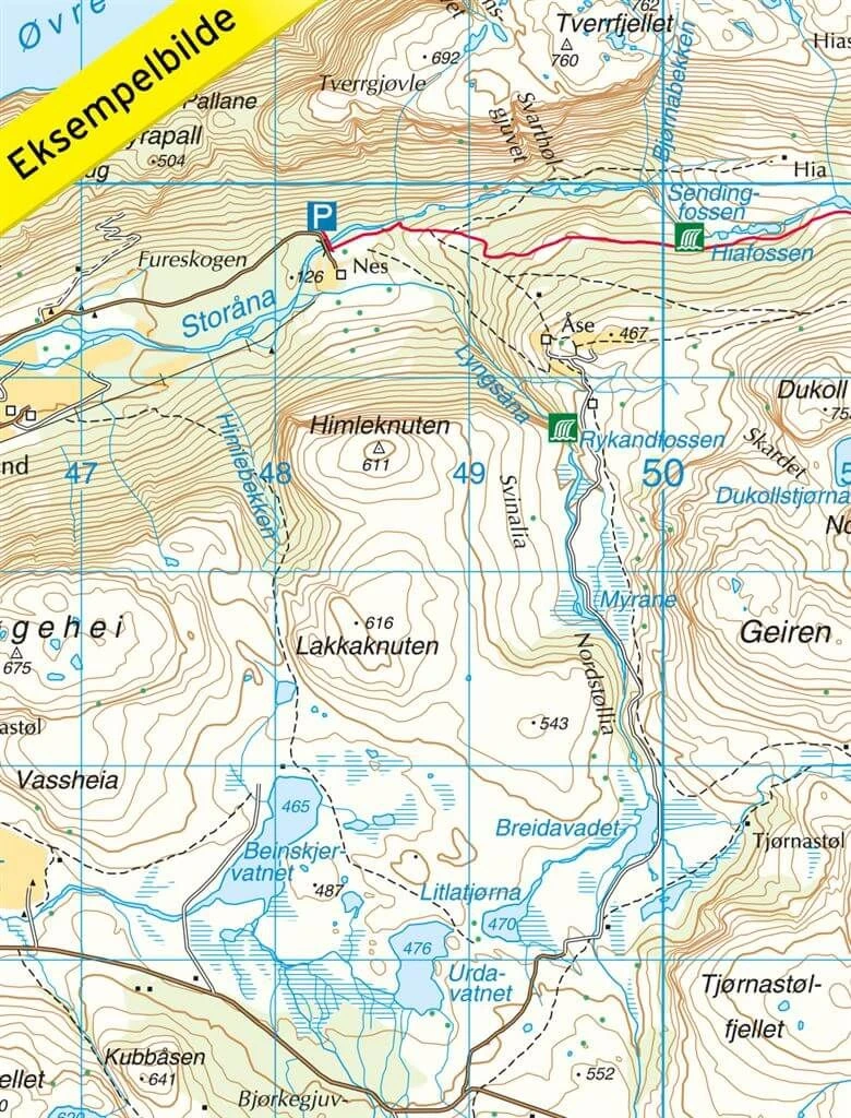 Detaillierte Wanderkarte fĂĽr Hjelmelandsheiane in Norwegen im MaĂźstab 1:50.000 von Nordeca.