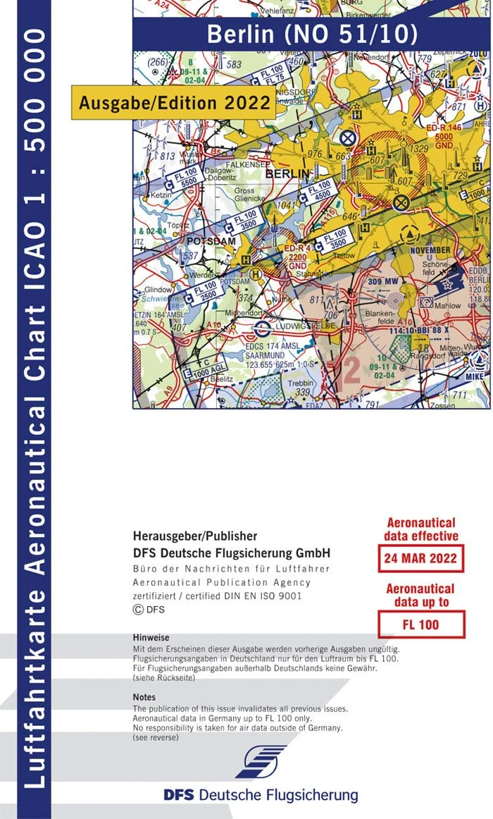 Die Luftfahrtkarte ICAO 1:500.000 liefert auf der Rückseite neben einer Übersichtskarte zum Blattschnitt auch folgende Informationen: