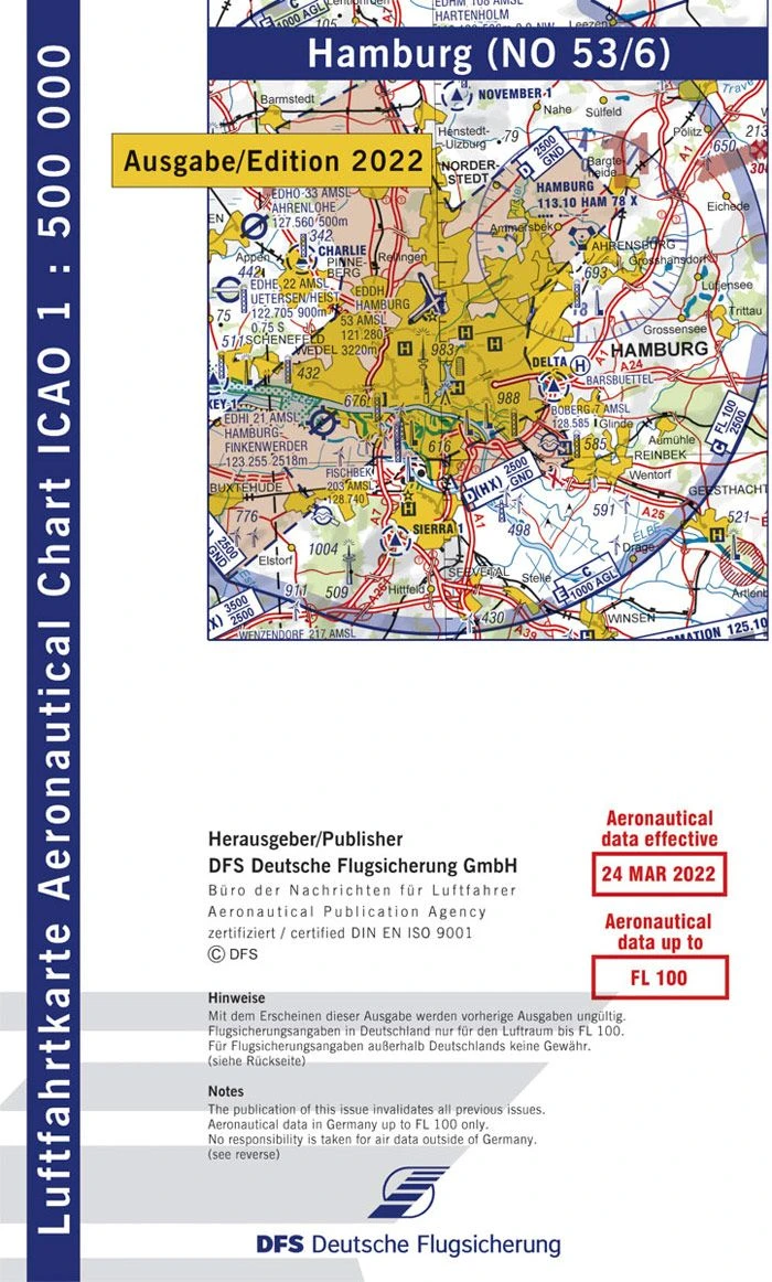 Die Luftfahrtkarte ICAO 1:500.000 liefert auf der Rückseite neben einer Übersichtskarte zum Blattschnitt auch folgende Informationen: