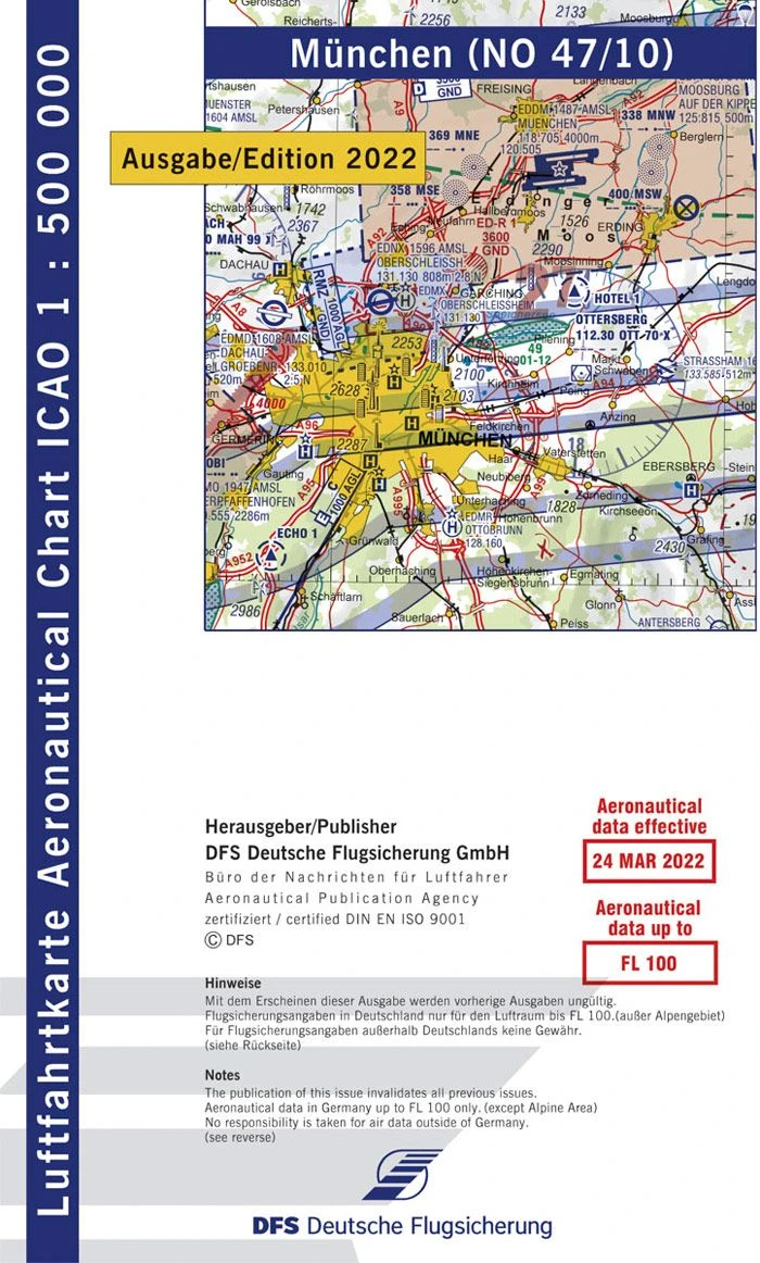 Die Luftfahrtkarte ICAO 1:500.000 liefert auf der Rückseite neben einer Übersichtskarte zum Blattschnitt auch folgende Informationen: