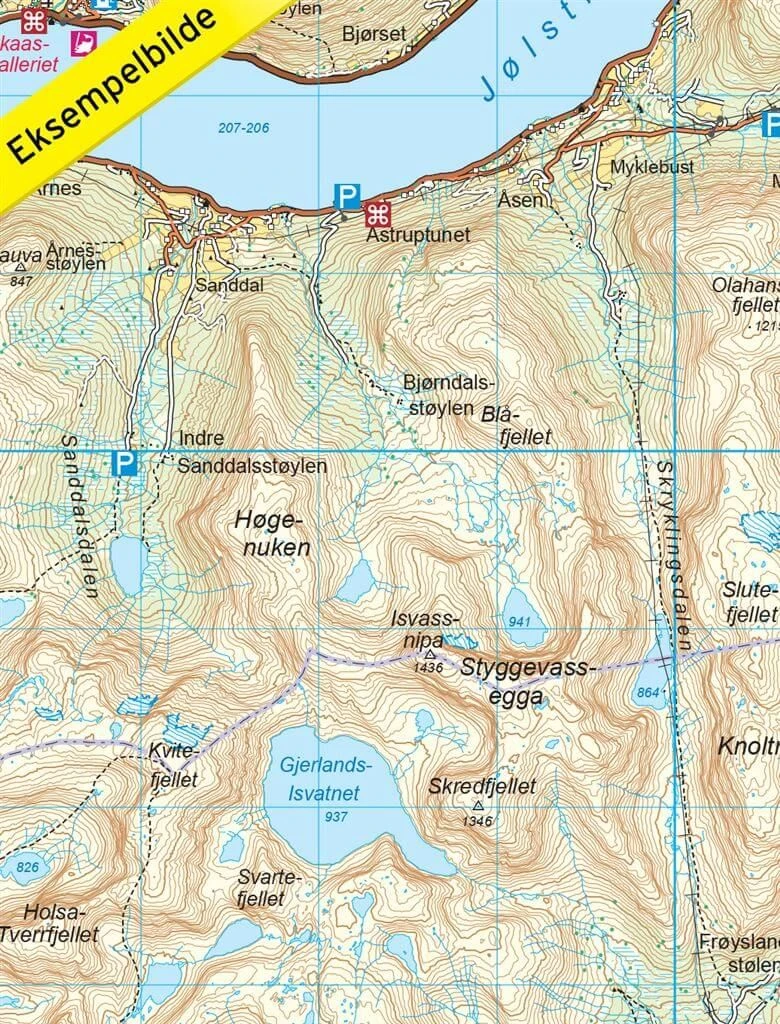 Detaillierte Wanderkarte für Indre Sunnfjord in Norwegen im Maßstab 1:100.000 von Nordeca.