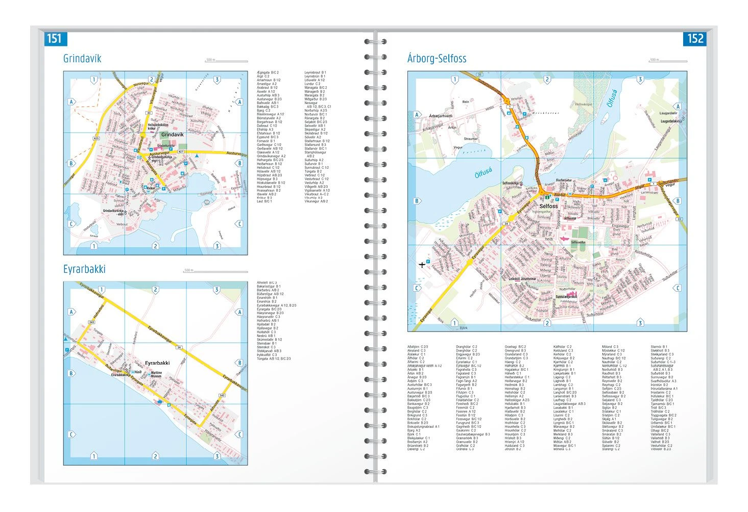 Mit dem detailreichen Kartenbild und dem genauen Maßstab lässt sich das gesamte Straßennetz auf der Insel, inklusive der Hochlandstraßen, nachverfolgen. Die Ringstraße (Hringvegur) ist mit einer eigenen Straßensignatur hervorgehoben und sowohl der Golden Circle (Gullni hringurinn) als auch der Arctic Coast Way (Norðurstrandarleið) sind als touristische Straßen gekennzeichnet.