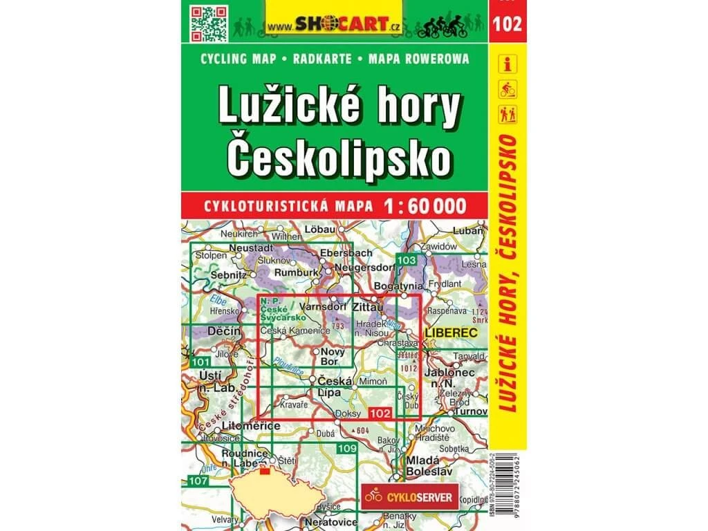 SHOCart 102 Radwanderkarte für Lausitzergebirge, Böhmisch Leipa im Maßstab 1:60.000 in Tschechien