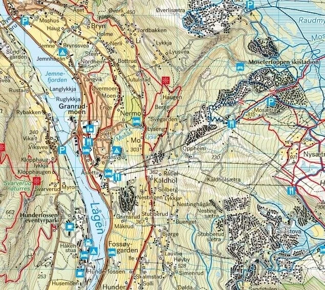Größere enthaltene Orte, Berge, Punkte: Oyer, Hornsjo, Faberg, Lillehammer, Skramstadsaetra, Asta, Brottum, Moelv, Biri, Veldre