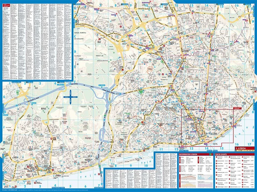 Wasserfester / Reissfester Stadtplan für Lissabon im Maßstab 1:14.000 von Borch