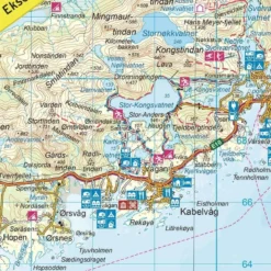 Detaillierte Wanderkarte fĂĽr Lofoten in Norwegen im MaĂźstab 1:100.000 von Nordeca.