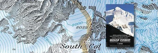 Einzigartige Karte vom «Dach der Welt» in der bekannten Schweizer Landeskartenqualität. Beschreibung der Erstbesteigungsrouten von 1953 bis 1986.