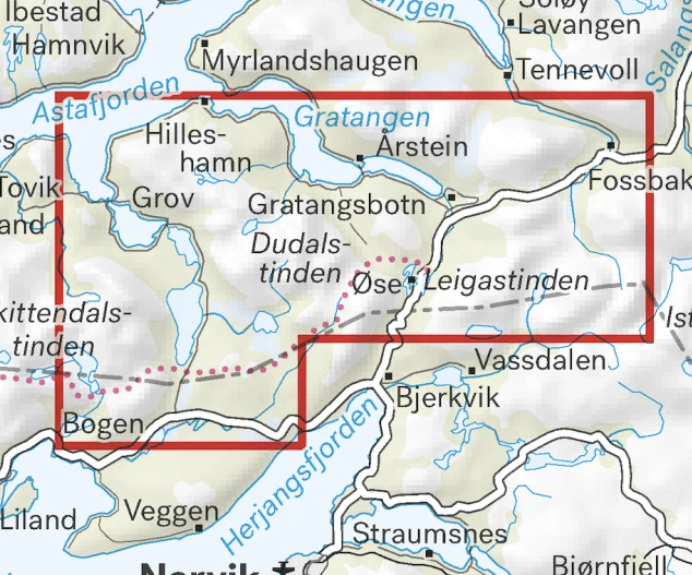 Wanderkarte für Narvik: Spanstinden & Dudalstinden im Maßstab 1:25.000 – Calazo Norwegen Hoyjfellskart