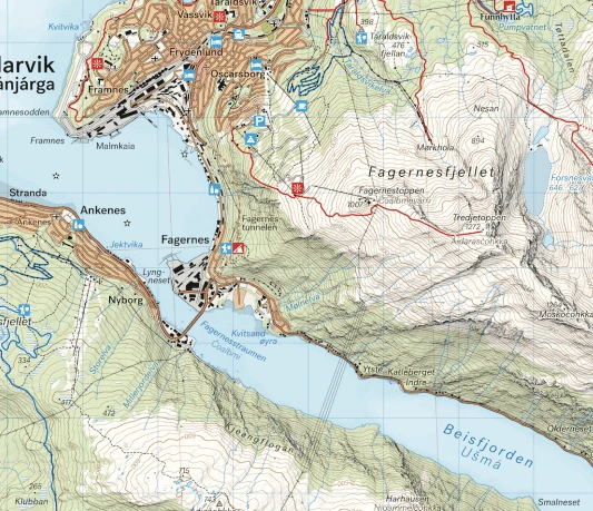 Wanderkarte für Narvik im Maßstab 1:50.000 – Calazo Norwegen Turkart