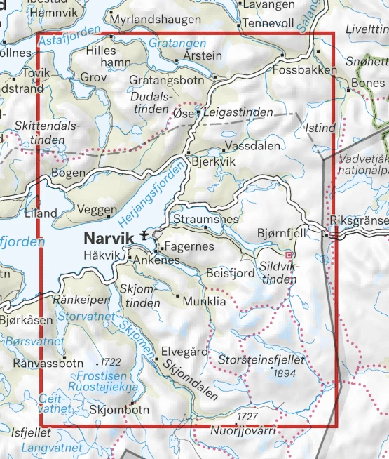 Größere enthaltene Orte, Berge, Punkte: Arstein, Leigastinden, Straumsnes, Narvik, Munklia, Skjombotn, Ranvassbotn, Herjangsfjorden, Skjomen