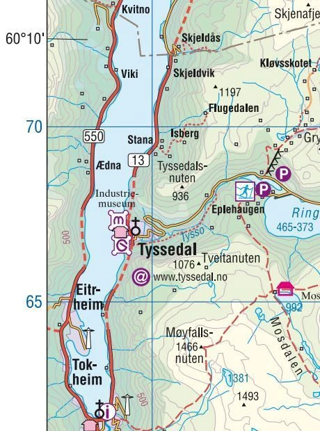 Enthaltene Orte, Berge und Seen: Rjukan, Geilo, Finse, Kinsarvik, Eidfjord, Odda, Røldal, Ulvik, Granvin, Haugastøl, Mårbu, Hårteigen, Hardangerjøkulen, Solfonntaggen, Sandfloegga, Gaustatoppen, Halliggskarvet, Onen, Eidfjord, Hardangerfjorden, Sørfjorden, Møsvatnet, Songavatnet, Ustevatn, Mar, Sysenvatnet, Langesjøen, Nordmannslagen.