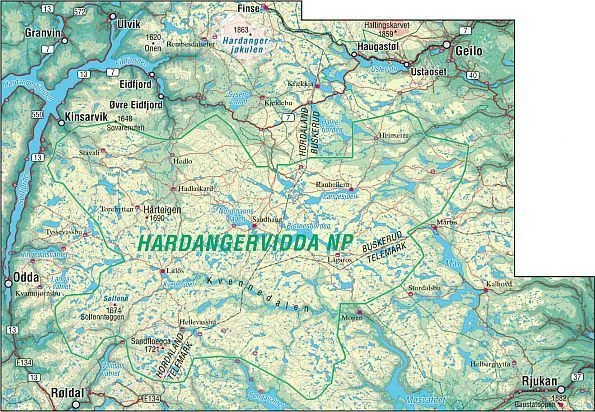 Hardangervidda Trekkingkarte / Freizeitkarte im Maßstab 1:150.000 von ProjektNord – Norwegen