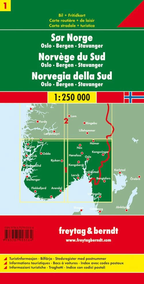 Freytag & Berndt Norwegen Süd Oslo, Bergen, Stavanger Straßenkarte im Maßstab 1:250.000