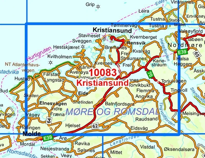 Kristiansund topographische Karte im Maßstab 1:50.000 Norge-Serien 10083 von Nordeca