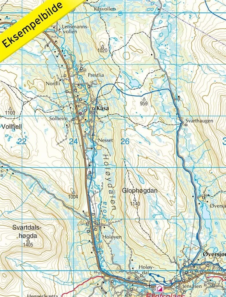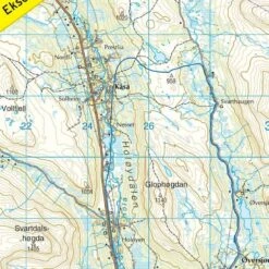Die topographische Wanderkarte im Maßstab 1:100.000 enthält neben zahlreichen Details auch touristische Informationen. Die Karten verzeichnen Straßen, markierte und unmarkierte Wanderwege (es wird zwischen Sommer- und Winterwanderwege unterschieden), markierte Skikarte, präparierte Skikarte, beleuchtete Skikarte*, Radwege*, Passagierschiffe*, Fährverbindungen* bzw-routen, Campingplätze, Hotels, bewirtschaftete und unbewirtschaftete Hütten, Parkplätze, Krankenhäuser, Krankenstationen, Kirchen, Freizeitmöglichkeiten*, Sehenswürdigkeiten* und alle für die orientierung wichtigen Details. Auf der Rückseite sind touristische Informationen enthalten (auf norwegisch). Die Äquidistanz (Höhenlinien) beträgt 20 Meter. Die Karten sind GPS-kompatibel (UTM WGS84).