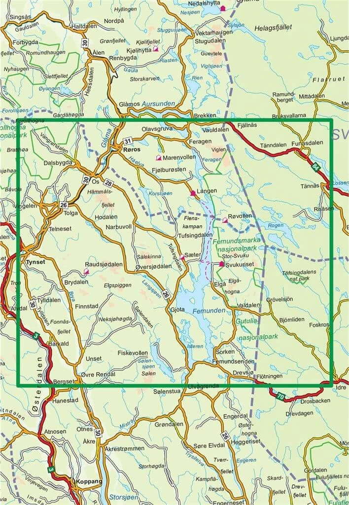 Detaillierte Wanderkarte für Femunden in Norwegen im Maßstab 1:100.000 von Nordeca.