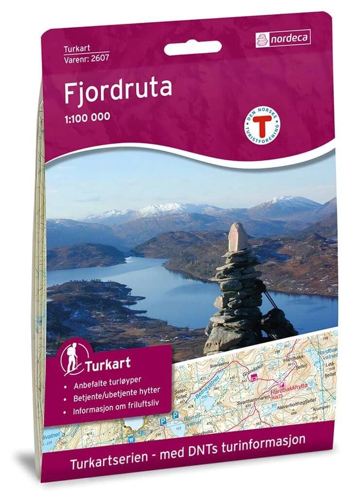 Detaillierte Wanderkarte für Fjordruta in Norwegen im Maßstab 1:100.000 von Nordeca.
