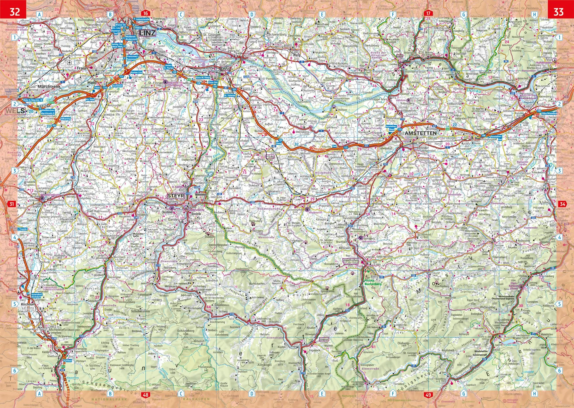 - Innenstadtpläne mit Straßenverzeichnis von Bregenz, Eisenstadt, Graz, Innsbruck, Klagenfurt, Linz, Salzburg, St. Pölten und Wien.