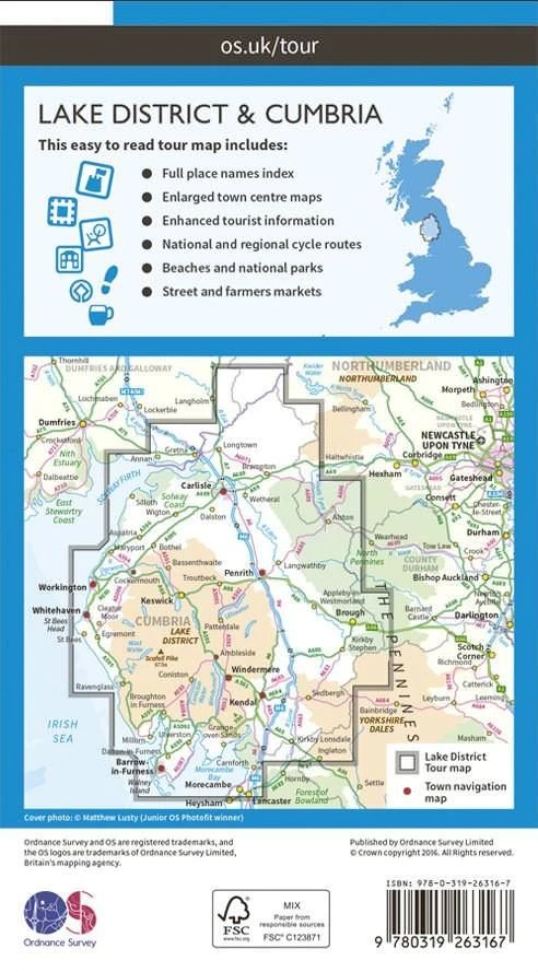 OS Tour Map Lake District & Cumbria Freizeitkarte mit Radrouten 1:110.000