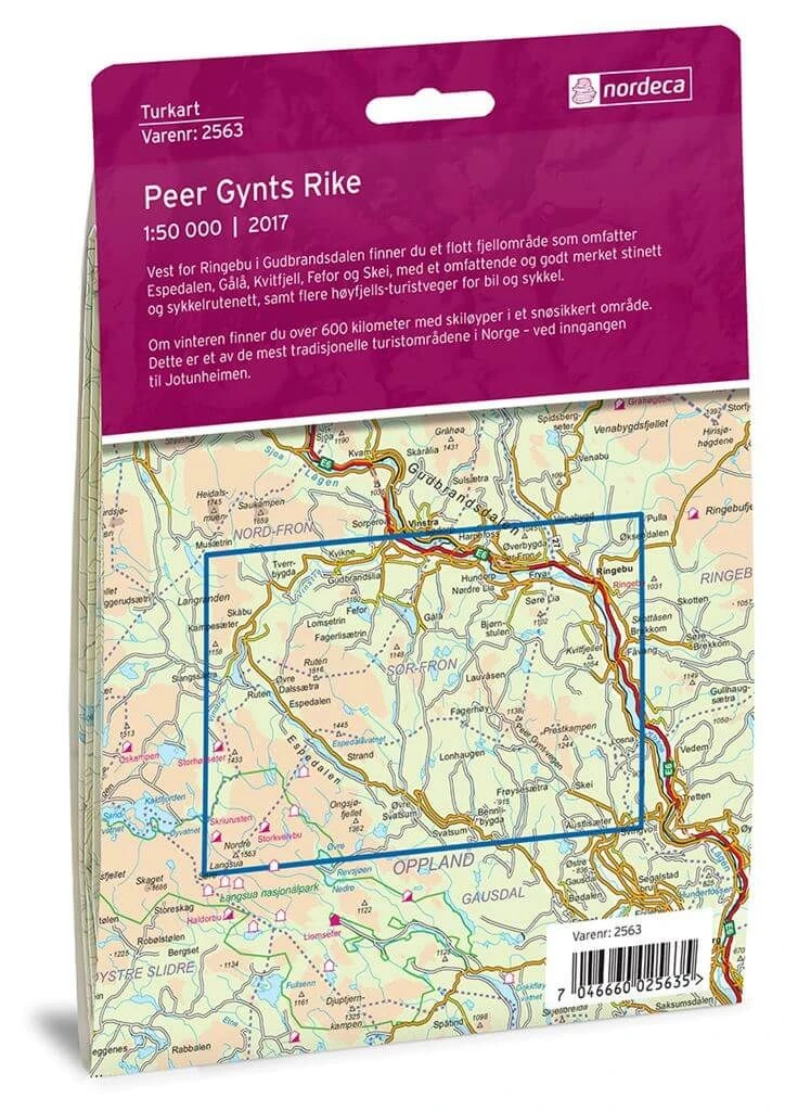 Detaillierte Wanderkarte fĂĽr Peer Gynts Rike in Norwegen im MaĂźstab 1:50.000 von Nordeca.