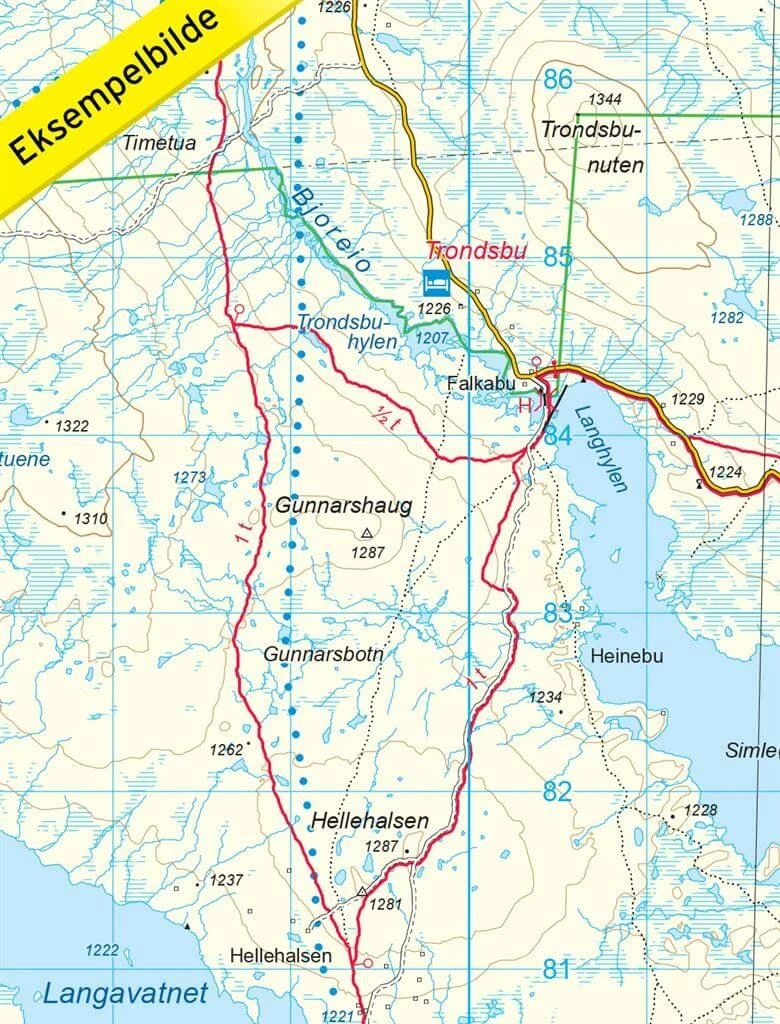 Detaillierte Wanderkarte fĂĽr Rauhelleren in Norwegen im MaĂźstab 1:50.000 von Nordeca.