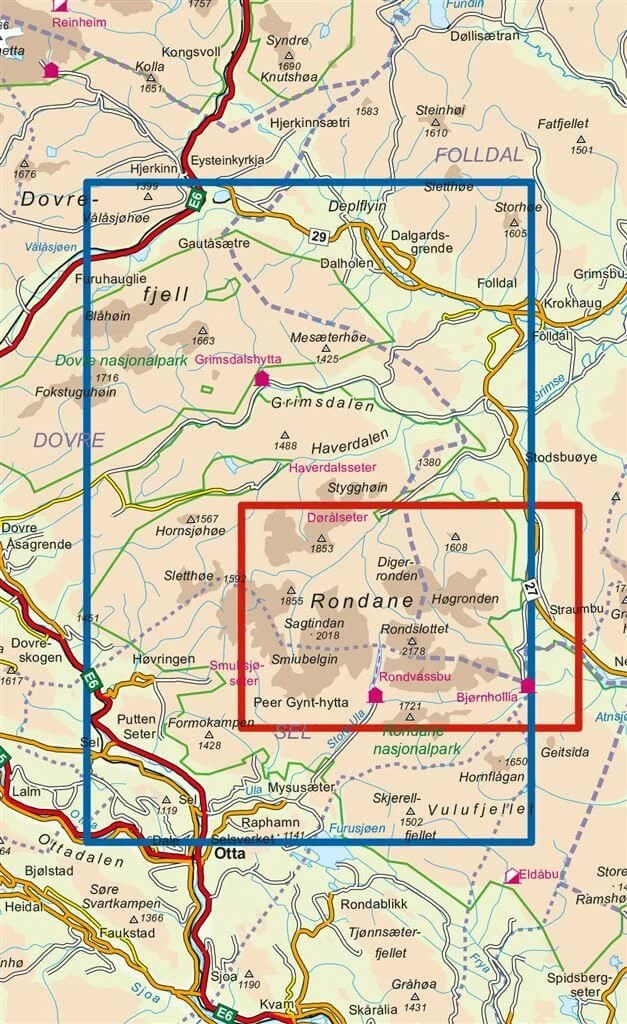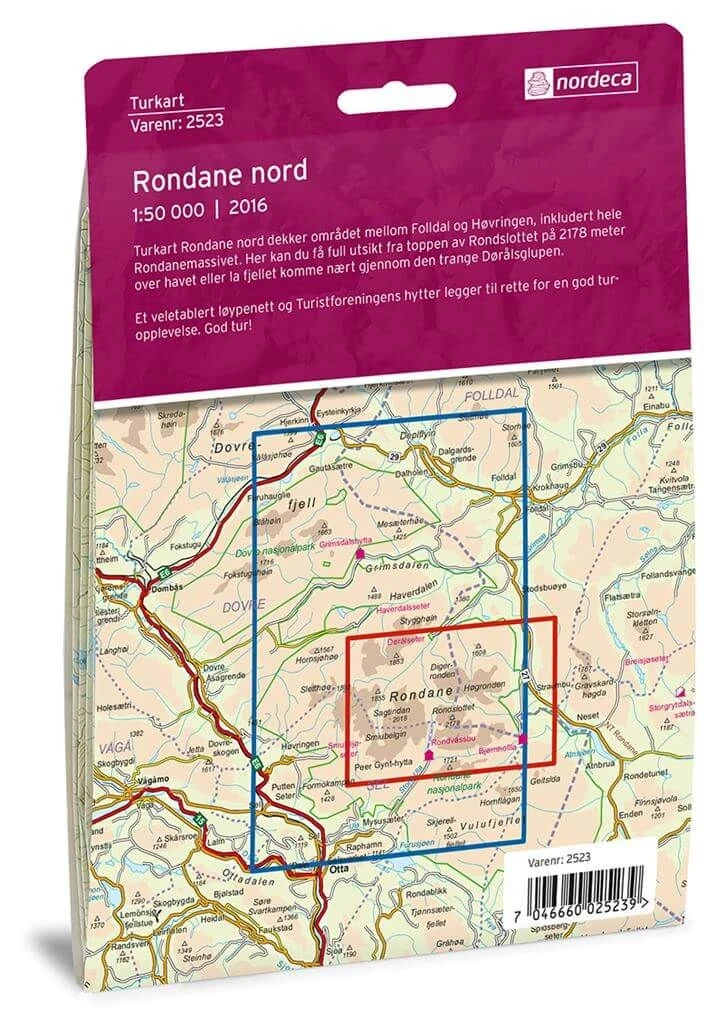 Detaillierte Wanderkarte fĂĽr Rondane Nord in Norwegen im MaĂźstab 1:50.000 von Nordeca.
