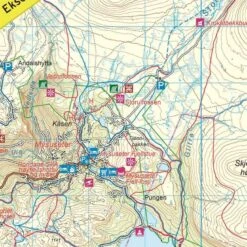 Die topographische Wanderkarte im Maßstab 1:100.000 enthält neben zahlreichen Details auch touristische Informationen. Die Karten verzeichnen Straßen, markierte und unmarkierte Wanderwege (es wird zwischen Sommer- und Winterwanderwege unterschieden), markierte Skikarte, präparierte Skikarte, beleuchtete Skikarte*, Radwege*, Passagierschiffe*, Fährverbindungen* bzw-routen, Campingplätze, Hotels, bewirtschaftete und unbewirtschaftete Hütten, Parkplätze, Krankenhäuser, Krankenstationen, Kirchen, Freizeitmöglichkeiten*, Sehenswürdigkeiten* und alle für die orientierung wichtigen Details. Auf der Rückseite sind touristische Informationen enthalten (auf norwegisch). Die Äquidistanz (Höhenlinien) beträgt 20 Meter. Die Karten sind GPS-kompatibel (UTM WGS84). Die Legende ist 2-sprachig (englisch und norwegisch). Die touristischen Informationen sind allerdings nur auf norwegisch. * Die mit Sternchen markierten Angaben können je nach Karte bzw. Gebiet variieren.