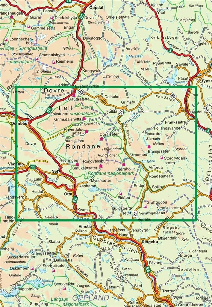 Enthaltene Orte, Berge und Seen: DombĂĄs, Otta, VĂĄgĂĄmo, Folldal, Alvdal, Dalen, Kvam, Dovre, Bjolstad, Bjornstad, Olstad, Stygghoin, Rondslottet, BlĂĄkollen, Geitsida, Storhoe, Gravskardhogda, Storhoa, Storsolnkletten, Smiubelgin, Jetta, BlĂĄhoe, Veslsolnkletten, Furusjoen, Storrvatnet, Lemonsjoen, Atnsjoen, Vesleolnsjoen. Region: Norwegen (Mittelnorwegen), Oppland, Hedmark.