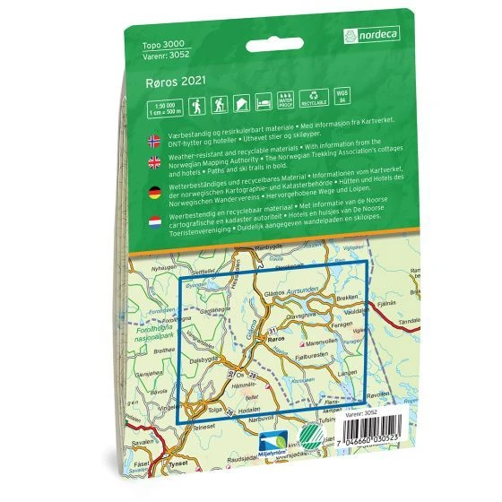 Detaillierte Wanderkarte für Røros im Maßstab 1:50.000 Blatt 3052 aus der Serie Topo 3000 von Nordeca