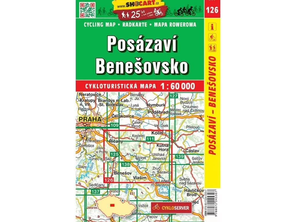 SHOCart 126 Radwanderkarte für Sazave-Land, Beneschau im Maßstab 1:60.000 in Tschechien