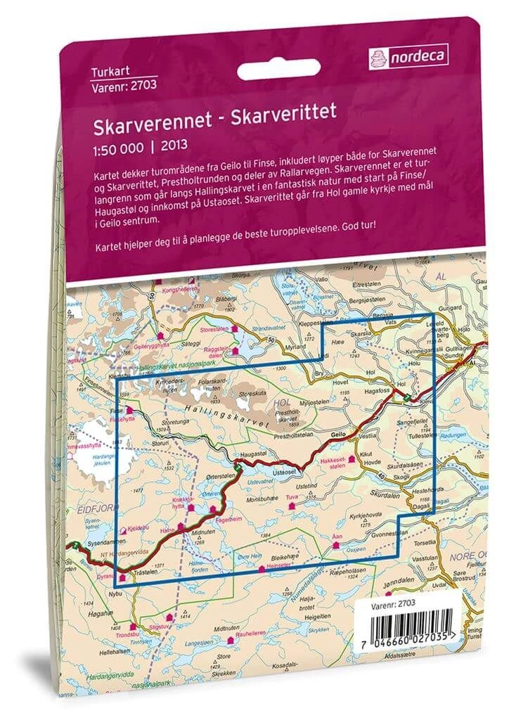 Turkart 2703 Wanderkarte fĂĽr Skarverennet im MaĂźstab 1:50.000 von Nordeca