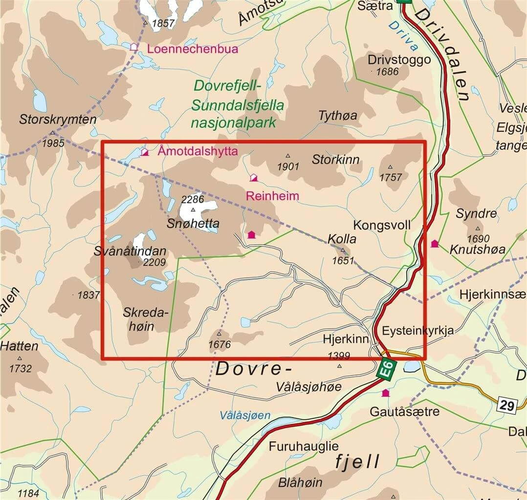 Enthaltene Orte, Berge und Seen: Amotdalshytta, Reinheim, Snohetta, Kongsvoll, Kolla, Eysteinkyrkja.