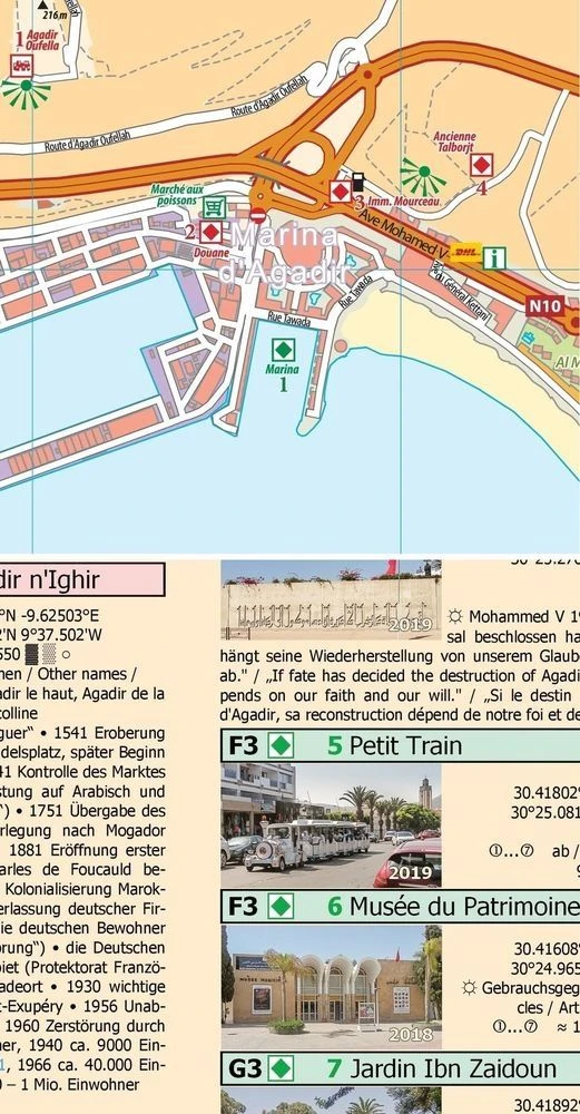 Zusätzlich werden Ausflugstipps in die nahe Umgebung angeboten. Diese sind bisher auf keinem anderen Kartenblatt von marokko-erfahren enthalten. Sie sind bebildert und mit thematischen Erklärungen versehen.