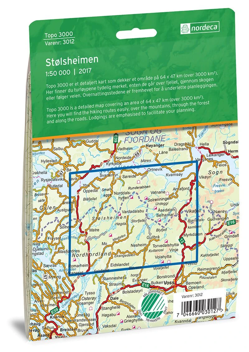 Norwegische topografische Wanderkarte für Stolsheimen / Stølshheimen und einen Teil des Nordhornlandes mit Sognefjorden