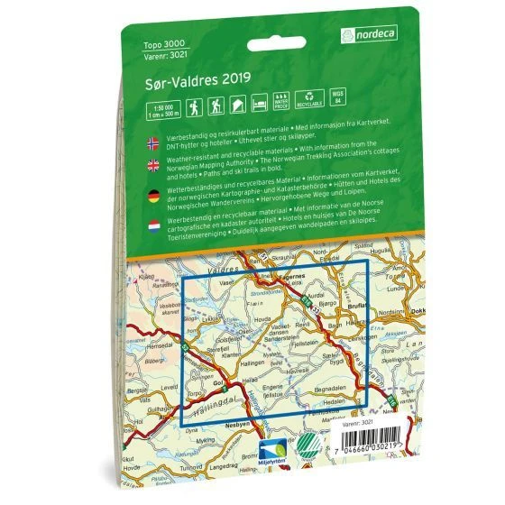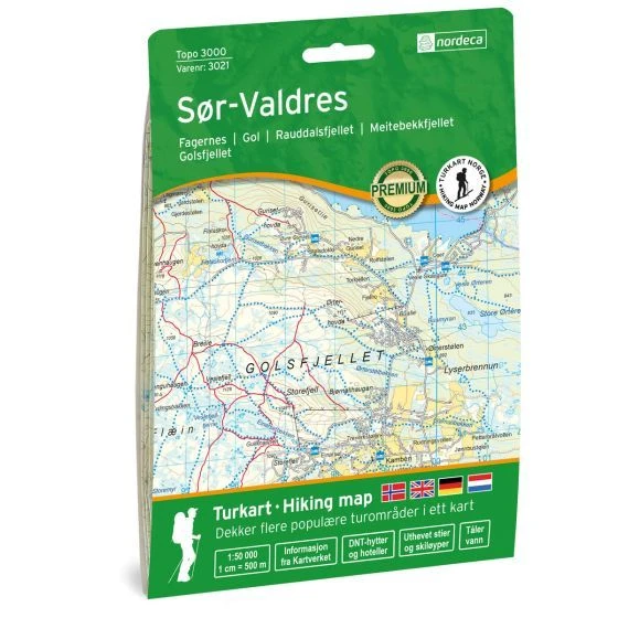 Detaillierte Wanderkarte für Süd-Valdres im Maßstab 1:50.000 Blatt 3021 aus der Serie Topo 3000 von Nordeca